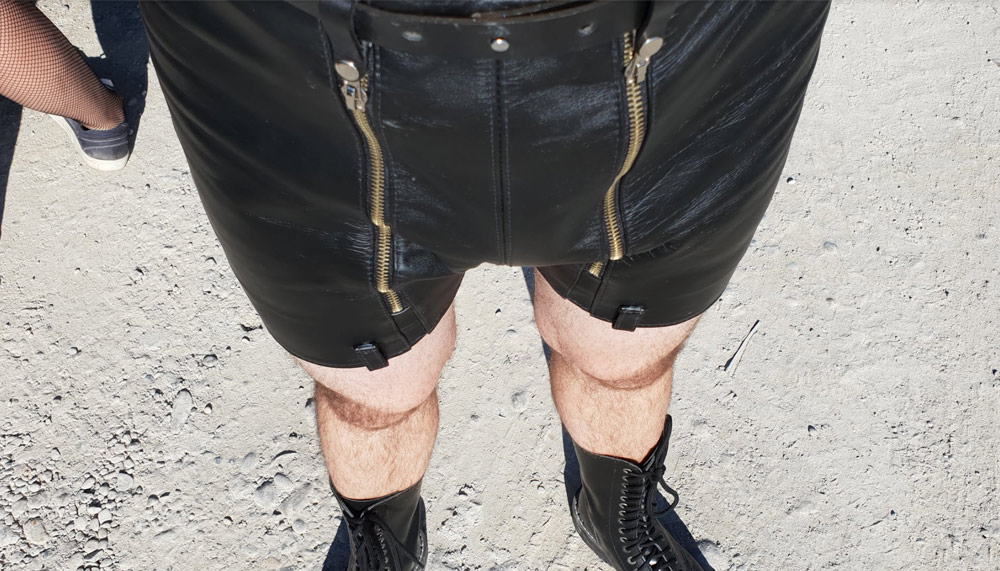 kolem 17:00 jsme už ale museli zpět k autu doplnit tekutiny, a něco posvačit. Tuhle návštěvu auta jsme využili i změnou outfitu. Zatímco naše drahé polovičky, vyměnily vysoké podpatky za pohodlnější obuv, my si ponechali glády. Navíc jsme ještě něco málo doplnili, já využil nerezového obojku s kódovým zámkem, a policejních pout na kotníky.