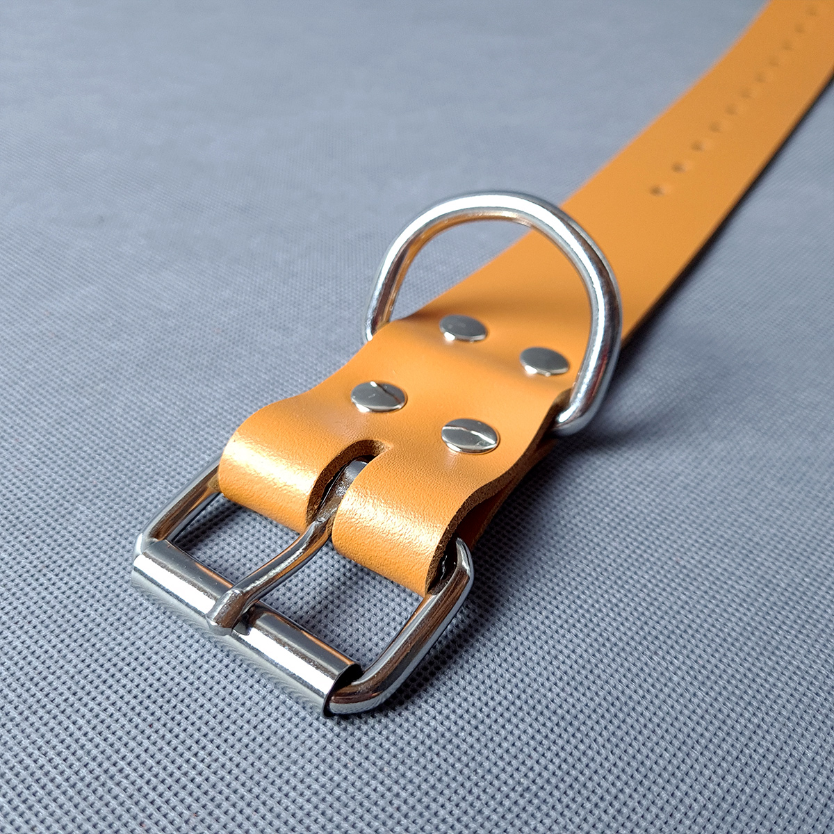 Dírky pro pevnou svařovanou přezku jsou prakticky po celé délce řemenu pro lepší využití.