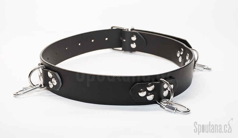 Chcete Vašemu submisivnímu partnerovi dopřát trochu té volnosti rukou, ale zároveň to zase nepřehánět, aby té volnosti nebylo až moc? Vezměte tento opasek, stáhněte v pase a přezkou za zády a nyní je na Vás kam partnerovi připnete ruce. Z vlastních zkušeností máme osvědčené dva různé způsoby. První, když připnete ruce zvlášť pouty k okům na bocích, přičemž přední oko lze použít například pro vodítko a partnera tak vodit s připnutýma rukama na bocích - tento způsob jde ještě vylepšit, a to tak, že lokty za zády spoutáte k sobě (vhodné pro větší imobilizaci). Druhým používaným způsobem je připnutí obou zápěstí k přednímu oku - boční oka mohou sloužit k upnutí, či připnutí partnera pomocí karabin a znemožnit mu tak pohyb.