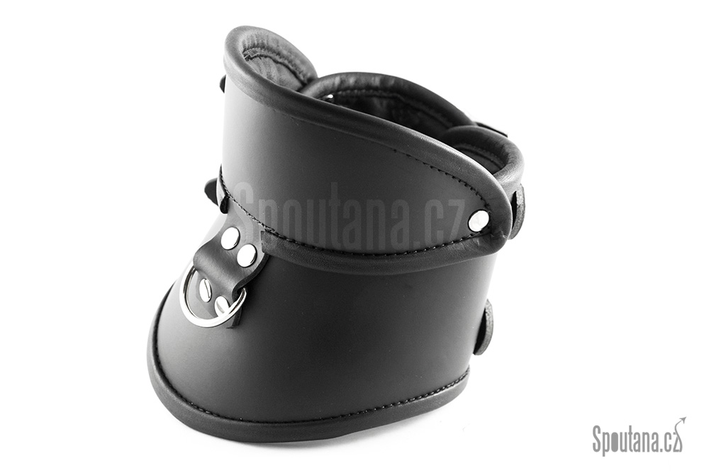 Masivní kožený obojek pro upevnění krku. Tvarován tak aby svým provedením maximalizoval efekt zpevnění a napřímení hlavy především díky přední části obojku která funguje jako podpěra brady.