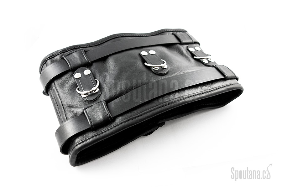 Množství kovových ok dovoluje širokou variabilitu fixace rukou na konkrétní místo. Jako skvělá volba se osvědčilo připoutání zápěstí k bočním okům na zadní straně a připnutí řetězu k přednímu oku. Dominantní partner tak může snadno vodit svého submisivního druha dle libosti.
