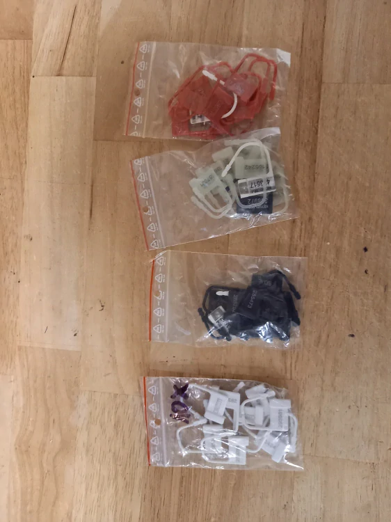 Balíček jednorázových plastových zámečků k pásům cudnosti. Různé barvy - pytlíček po 10 kusech.